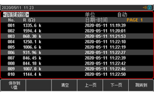 支持將測試數(shù)據(jù)手動(dòng)保存于儀器內(nèi)部(存儲500組)。