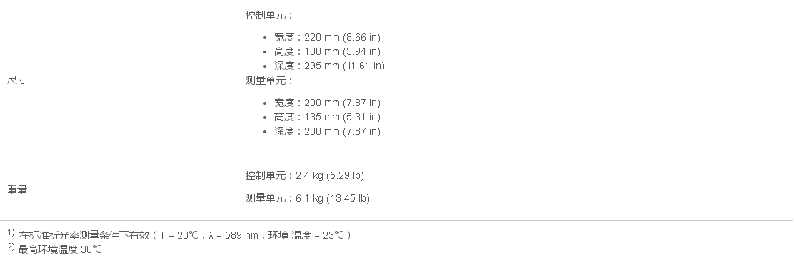 1.耐用設(shè)計(jì)允許在惡劣環(huán)境下進(jìn)行精確的折光率 (+/-0.0001 nD) 和濃度測(cè)量