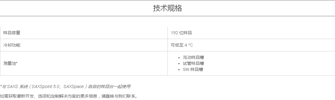 ASX 自動(dòng)進(jìn)樣器可與所有流通池和相應(yīng)樣品臺(tái)(TCStage 溫控樣品臺(tái) 和 加熱進(jìn)樣器)一起使用。對(duì)于隨溫度變化的 SAXS 和 WAXS 研究,可選擇使用: