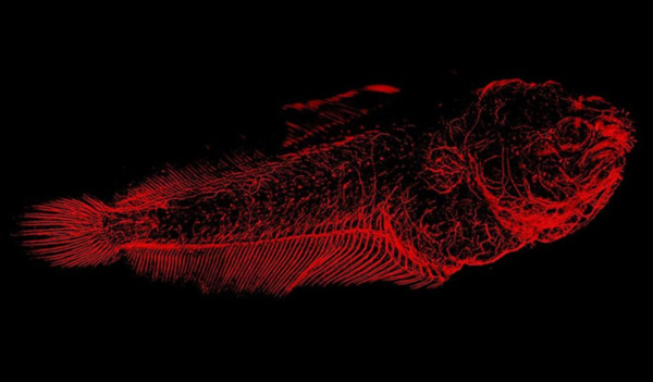 Solea senegalensis larvae nervous system, max projection of a tile scan of 6 fields x 33 planes. Parallax correction and tiling performed in LAS X after deconvolution with Huygens professional. Courtesy of Dr. Marco A. Campinho, CCMAR - Centre for Marine Sciences, Universidade do Algarve, Portugal.