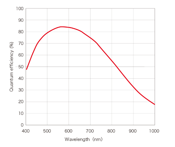 | 暗電流 | 0.6 electrons/pixel/s (typ.) (Air cooled, Cooling temperature: +10 °C) |