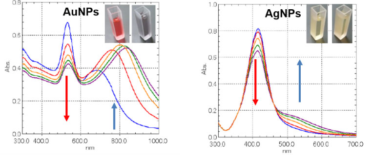超快掃描速度,輕松追蹤化學(xué)反應(yīng)過程。下圖為當(dāng)納米粒子中加入NaCl鹽溶液后,在不同時間下紫光光譜監(jiān)測到的粒子聚集過程。