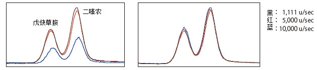 在10,000u/sec 以上的掃描速度下,利用ASSP功能,以高電壓加速離子并保持離子信號強(qiáng)度,在全質(zhì)量范圍內(nèi)抑制了信號強(qiáng)度下降。