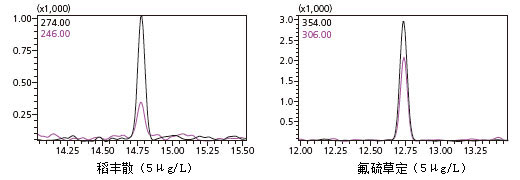農(nóng)藥質(zhì)量色譜圖(5 μg/L,SIM模式,氫氣作為載氣)