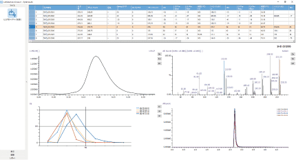 在解析界面中,可以按目標(biāo)化合物或檢測數(shù)據(jù)顯示,也可以一覽表形式顯示定量值和面積值,并根據(jù)工作流程選擇易于確認(rèn)的顯示方法。此外,樣品查看界面 可以并排顯示多個(gè)色譜圖,以進(jìn)行直觀地比較和色譜峰校正,從而大幅節(jié)省數(shù)據(jù)處理的時(shí)間和精力。使用標(biāo)記功能,可以將超過基準(zhǔn)值的分析結(jié)果用不同顏色進(jìn)行標(biāo)注,也可以只顯示帶有標(biāo)記的結(jié)果,定量、精度管理結(jié)果顯示一目了然。定量結(jié)果可以劃分為五個(gè)級別,從而輕松檢查目標(biāo)化合物的范圍。