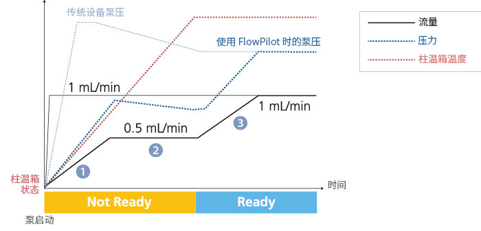 在自動(dòng)平衡色譜柱時(shí),如果柱溫箱溫度較低,則會(huì)通過 FlowPilot 智能流量控制功能自動(dòng)降低流量,防止色譜柱劣化。各種 Analytical Intelligence 功能保證高質(zhì)量的分析。