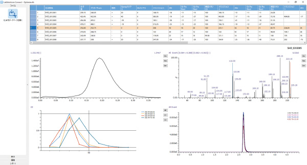 可自動(dòng)優(yōu)化 MRM 參數(shù) ( 前體離子 m/z、產(chǎn)物離子 m/z、各種電壓等 ) 和離子源接口參數(shù) ( 氣體流量、溫度條件 ) 。通過多方位探索極性、加合離子和價(jià)態(tài),僅需一次優(yōu)化即可獲得以更高靈敏度測定所需成分的質(zhì)譜條件。